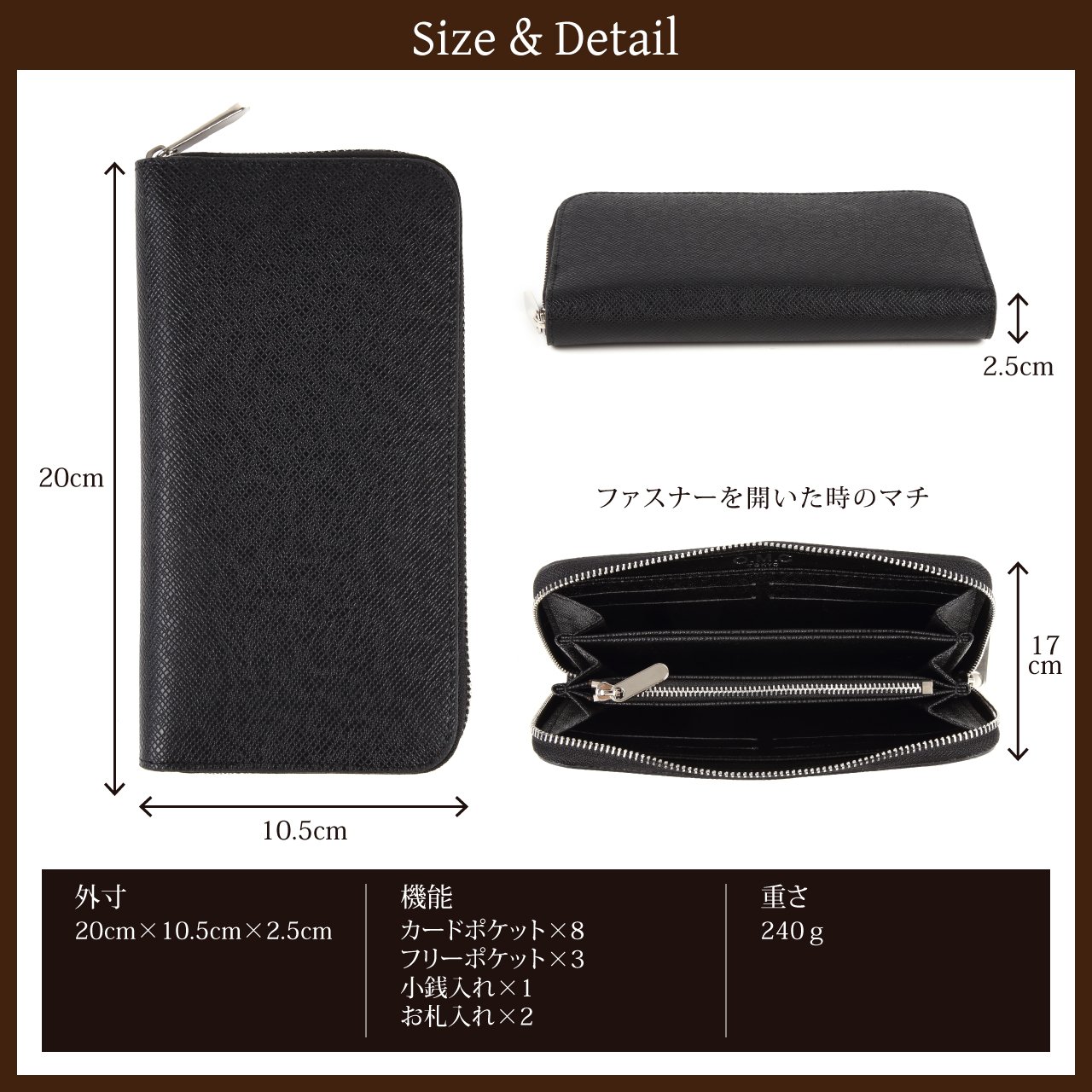 Card pocket × 8, free pocket × 3, coin purse × 1, wallet × 2