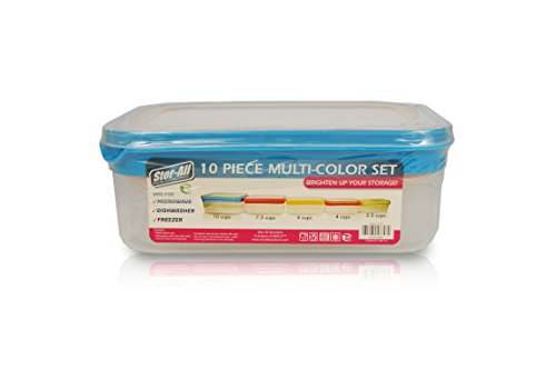 Stor-All Solutions Kitchen Accessories, BPA-Free Rectangle Storage Containers With Assorted Color Lids, 10 Piece, Clear