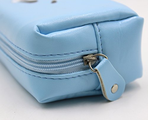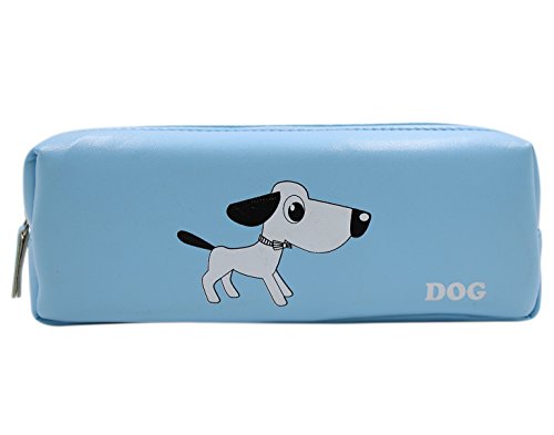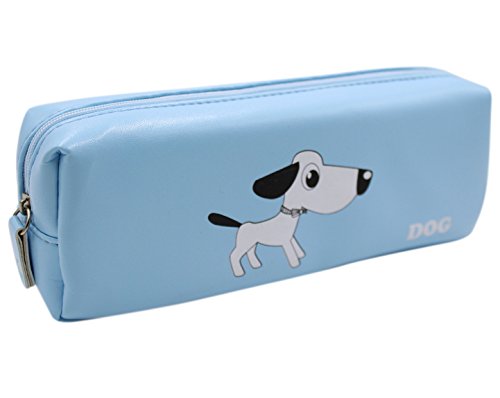 Student Cute Blue Dog Pencil Bag PU Pen Zipper Case Women Cosmetic Organizer Pouch
