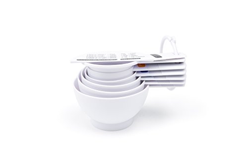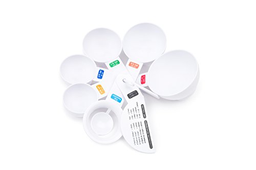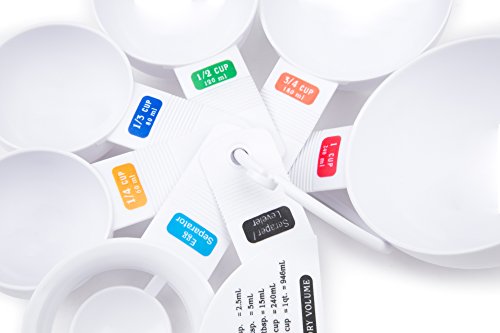 - Set of 7 includes 1/4 cup, 1/3 cup, 1/2 cup, 3/4 cup, 1 cup, egg separator, and leveler