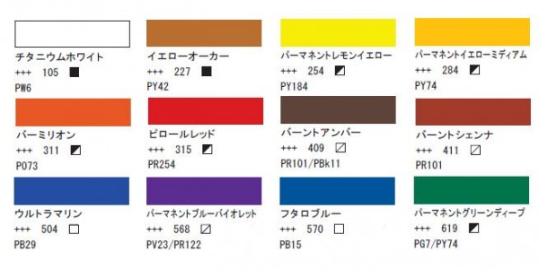 | セット内容 | 20ml×12本セット 【セット配色】 105、227、254、284、311、315、409、411、504、568、570、619 |