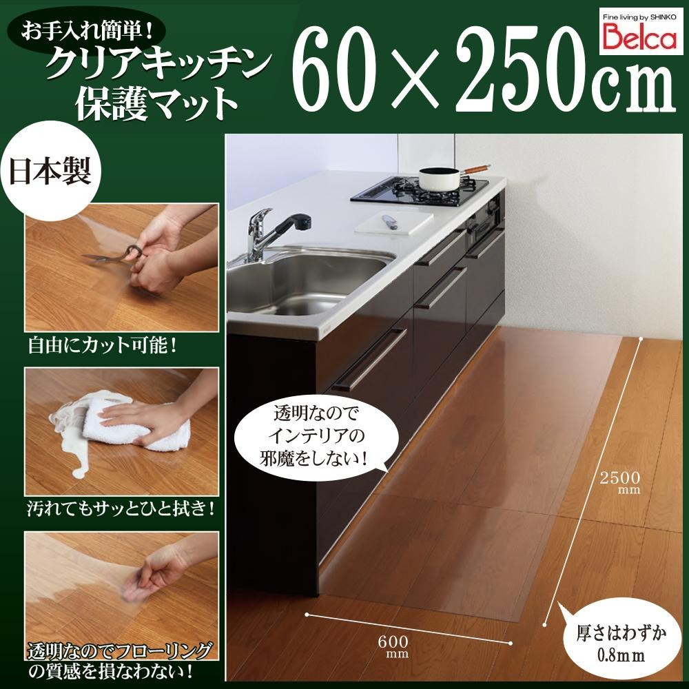 fk094igrjs敷くだけ簡単♪キッチンの床面をキズや汚れから守る保護マットです。透明なのでフローリング本来の質感を損ないません。 製造国:日本 素材・材質:PVC 商品サイズ:約60×250cm、厚さ0.8mm 仕様:カット可能耐熱温度:60度まで※お届け地域により、別途運賃がかかる場合やお届けできない場合がございますので、お問い合わせ下さい。