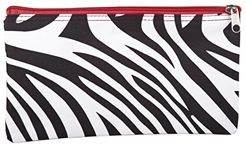 11" Zebra Print Zip Cosmetic Travel School Gym Makeup Brush Bag Pouch (Red Trim)