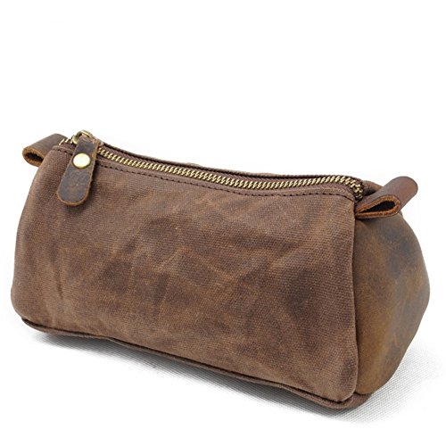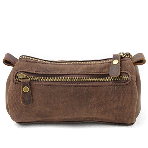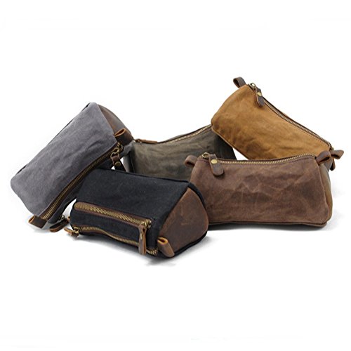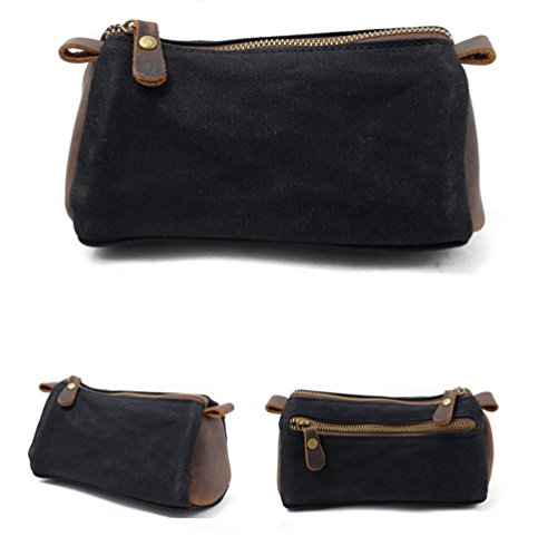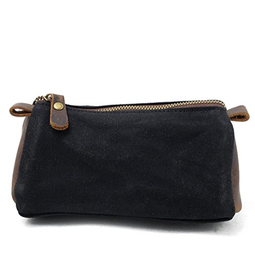 Small Toiletry Bags, Men's Toiletries Vintage Cosmetic Makeup Bag - Crazy Horse Leather Trim Waterproof Wax Canvas Royal Fair (Black)