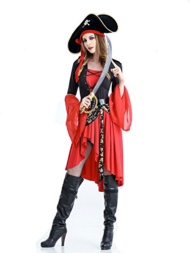 -. Binding : Apparel -. Brand : ANRevelinCN -. Color : Red -. Department : unisex-adult -. Feature : Polyester material ,elastic super comfortable fabric. / Product includes dress cap belt, Weight: about 0.7KG. / Warm tips:Cold water washing and Handwash. / Made by experienced factory,stylish design,good quality. -. ProductGroup : Apparel -. ProductTypeName : ACCESSORY -. Title : Women halloween Pirate costume captain cosplay dress 1358