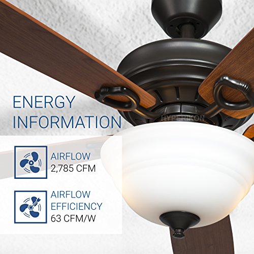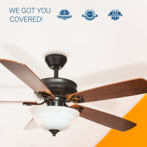 Hyperikon Indoor Ceiling Fan with Remote Control, 42-Inch Brown Ceiling Fan, Five Reversible Blades and Frosted Dome Light - Bulb Not Included