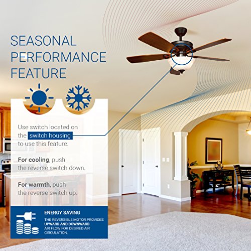 ✔ TWO-WAY ROTATION - The reversible control function allows you to switch the direction of the classic wood ceiling fan from downward airflow during the summer to upward during the cooler winter period to reclaim lost heat from the ceiling.
