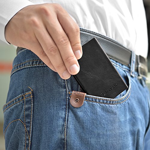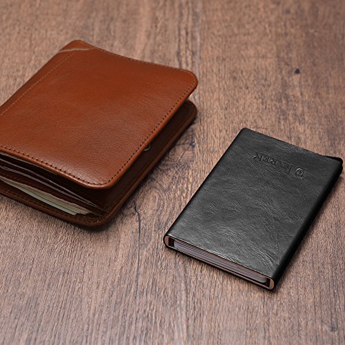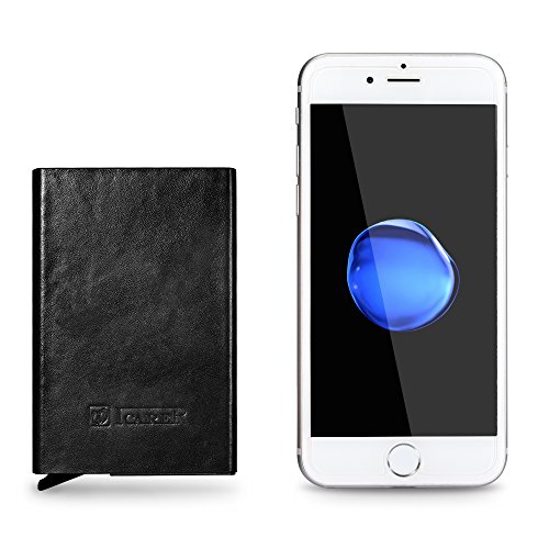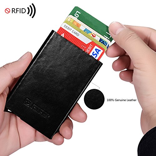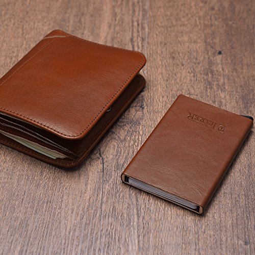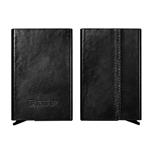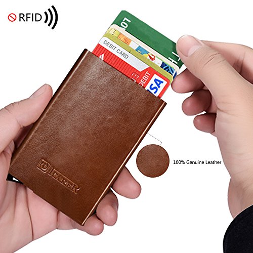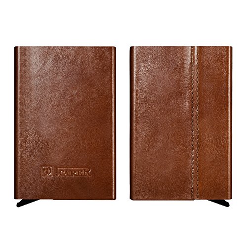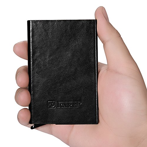 -. Feature : ☆ [GENUINE LEATHER & ALUMINUM] 100% genuine cowhide surface leather with purely handmade by innovative and luxurious design. Every piece of leather has its unique veins and pores. Internal aluminum can also be very good protection to prevent distortion. / ☆ [SECURITY&SAFETY] ICARER Automatic Pop-up RFID Protection Card Case Holder can perfectly block unwanted RFID scanners, includes RFID blocking technology to prevent unauthorized access to personal information(ID cards,credit cards and more) / ☆ [EASY ACCESS TO CARD] The case is a unique slim organizer that quickly and neatly gradually slides your cards out with one click.With a click all cards slide out gradually. The cards will not fall out and is a perfect card case. / ☆ [LARGE CAPACITY] Holds approximately 10 business cards or 6 credit cards depending on the thickness of your business card. Fits comfortably in your front pocket, purse or briefcase.Store your business cards, cash, credit cards, and gift cards in true style with this sleek card case.Professional design is to protect and organize your cards. / ☆ [LIGHT-WEIGHT DESIGN] Simple fashion appearance is free to lift the lid of the business card box impression.On the other hand the compact card case allows you to bring it along in your jean pocket,handbag, backpack.More durable and convenient for the everyday commuter or traveler.