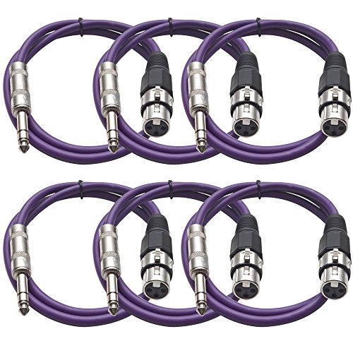 Seismic Audio SATRXL-F3Purple6 3-Feet XLR Female to 1/4-Inch TRS Patch Cables - Purple