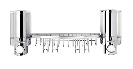 - Includes chrome plated steel shower basket and hooks for additional storage