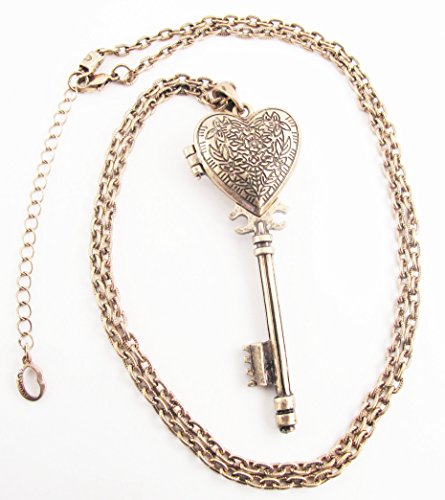 DaisyJewel Victorian Jewelry Key to My Heart Pendant Necklace Heart Locket Features an Elegant Victorian Vintage Look in Filigreed Nickel Free/Lead Free Bronze Alloy. Gorgeous Heart Locket is Engraved with Intricate Floral Design and Features Robust Antique Patina with Secure Magnetic Closure. Adjustable Textured Round Link Cable Chain with Lobster Clasp Measures 30.5 in. with 3.5 in. Link Extender, for Total Chain Length of 30.5 in. - 34 in. Nicely Weighted Key Locket Pendant Measures 3.75 in. Long, Including Bail, and 1.25 in. Across at Widest Point. Interior Heart Spaces Measure 1 in. Across at Widest Point - Enough Space for Small Photos. Each Instant Classic of a Necklace is Hand Packaged with Care by Amy and Torey in a Complimentary Organza Sachet Gift Bag. All DaisyJewel Items are Sold Only by DaisyJewel. DaisyJewel by Amy and Torey: Blooming Beauty Since 2012!Feature