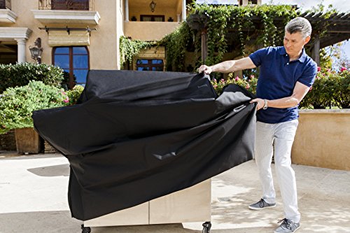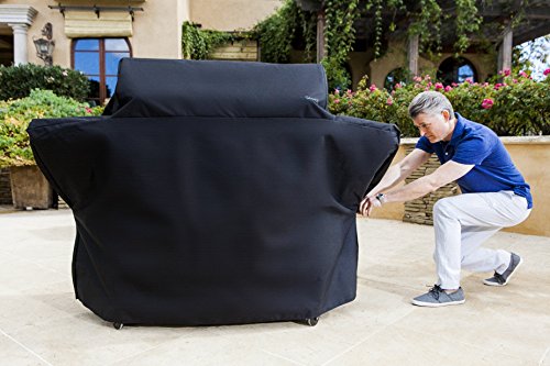 -. Feature : Constructed with marine-grade, dyed polyester that resists fading, mildew and cracking / Repels water to protect your grill / Fits all saber 670 gas grills / 3-Year Warranty