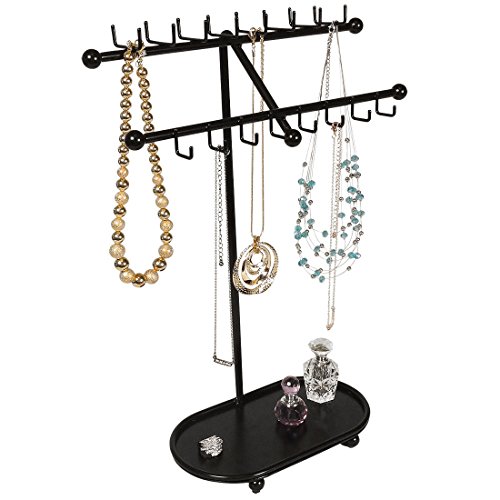 Designers Impressions JR21-FB Flat Black Tree Organizer Free Standing Necklace Holder & Jewelry Display Rack with Tray