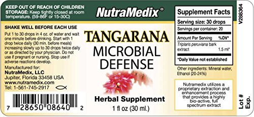 -. Feature : MICROBIAL DEFENSE - Tangarana, an extract from the bark of Triplaris peruviana, may have microbial defense properties.* / PROP.R.IETARY WHOLE HERB EXTRACTION PROCESS - Highly bioavailable liquid for improved absorption. NutraMedix's unique enhancement process optimizes the whole herb for a more powerful broad-spectrum extract.* / FROM NATURE - Our products are sourced from nature's richest botanical resources, P.R.Imarily Peru and the Amazon Rainforest.* / FEEL THE DIFFERENCE - Put 1 to 30 drops in 4 oz. of water and wait one minute before drinking. Start with 1 drop twice daily (30 min. before meals) increasing slowly up to 30 drops twice daily or as directed by your physician. Do not use if pregnant or nursing. Shake well before each use.* / OVER 20 YEARS OF NUTRACEUTICAL INNOVATION - Founded in 1993, NutraMedix supplies highly bioavailable nutritional supplements to health care professionals and consumers.* A majority of NutraMedix profits are donated to charitable organizations.