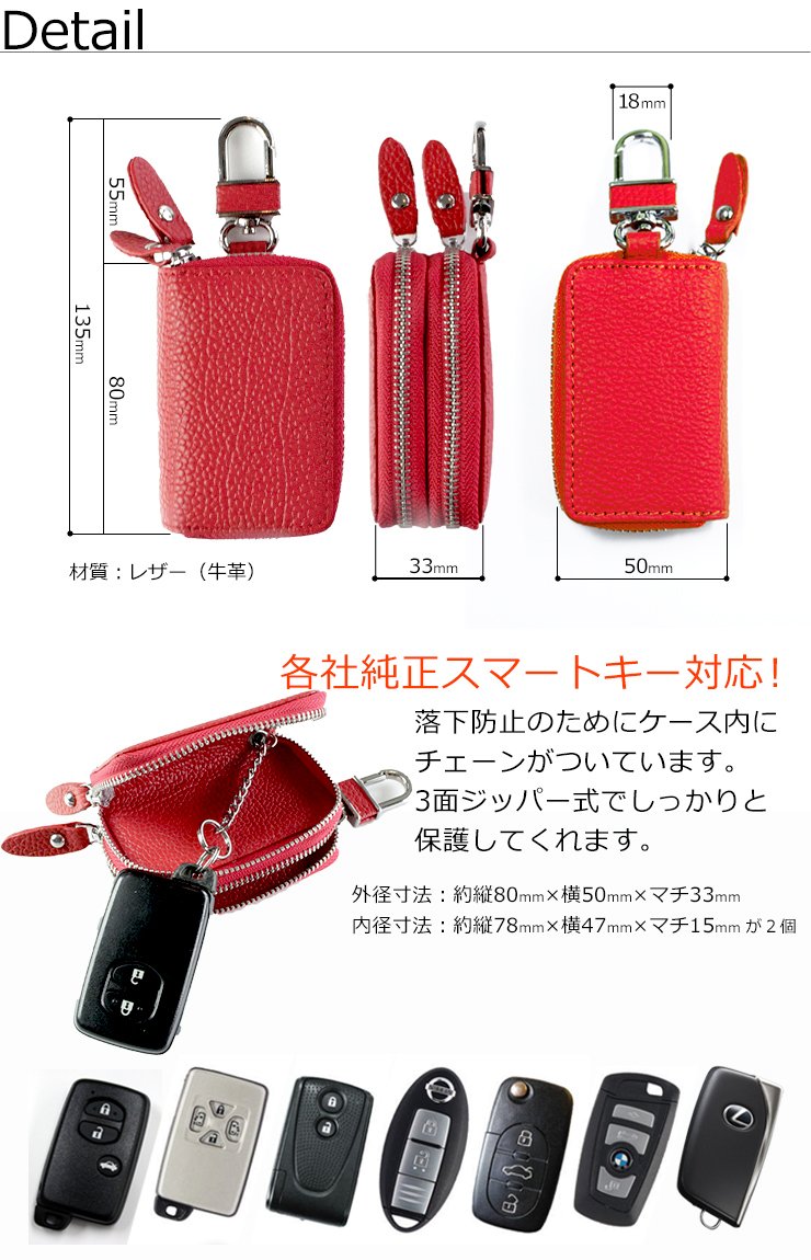 Awesome smart key cases double zipper type White ASK-W003