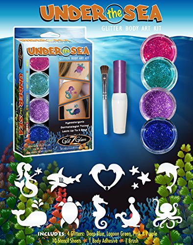 "Under The Sea" Body Art kit by GlitZGlam includes everything you need to create amazing temporary tattoos in the theme of the ocean and sea.