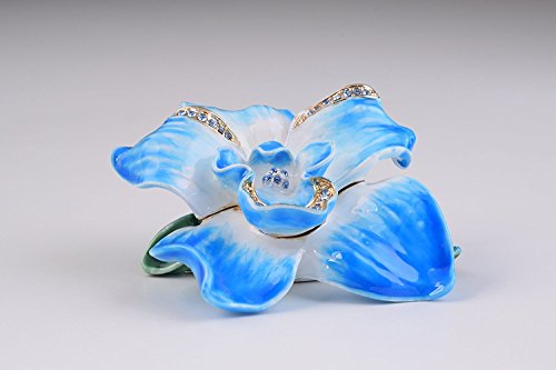 Blue Flower Trinket Box Decorated with Swarovski Crystals