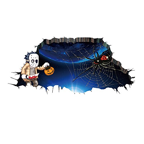 -. Title : 3D Halloween Horror Decor Vivid Spider Ghost Pumpkin Cracked Wall Floor Scary Wall Sticker Decal Removable Home Decoration Art Mural Wallpaper