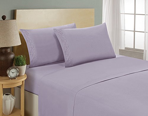 1500 Thread Count SCROLL DESIGN Egyptian Quality Luxurious Silky Soft WRINKLE & FADE RESISTANT 4 pc Sheet set, Deep Pocket Up to 16" - All Size and Colors, Full Lilac