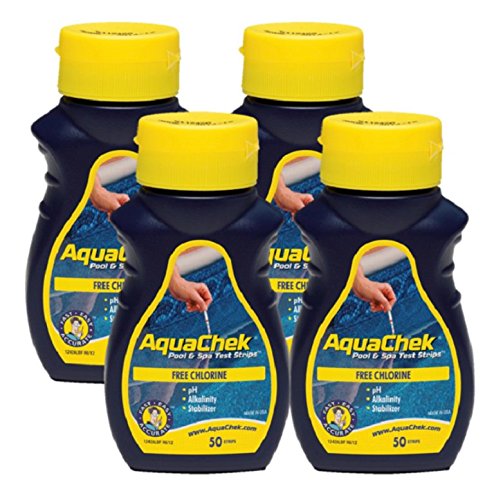 AquaChek Yellow Water Testing Strips - (50) for Free Chlorine, Total Alkalinity, Cyanuric Acid (Stabilizer) & pH - (4) Pack