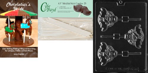 Cybrtrayd 45St25Bk-C411 'Reindeer Lolly' Christmas Chocolate Candy Mold with 25 4.5-Inch Lollipop Sticks and Chocolatier's Guide