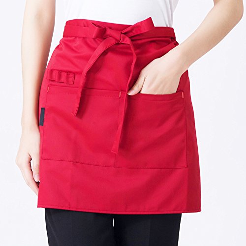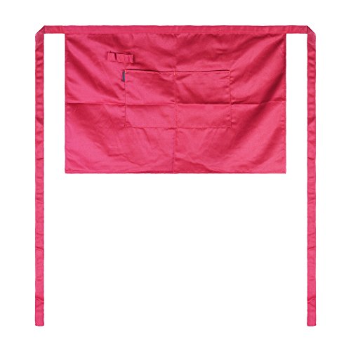 BCP Cotton Half Waist Server Apron with 2 Pocket for Restaurant Bartender Waitress Waiter (Burgundy Red)