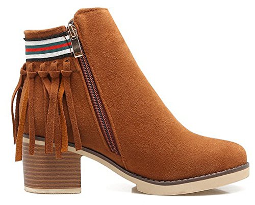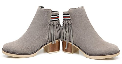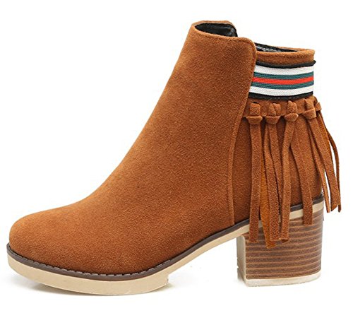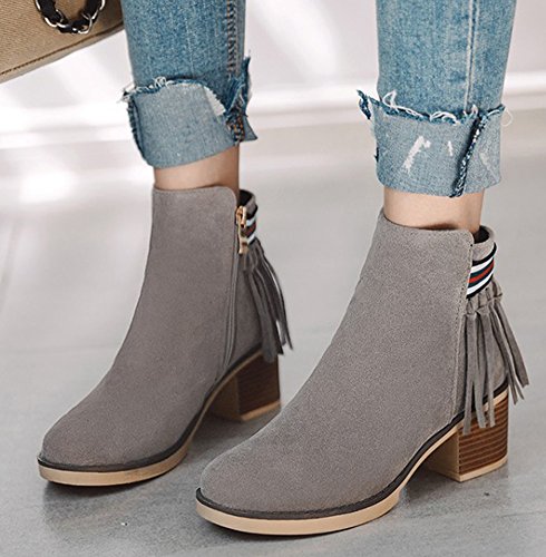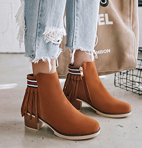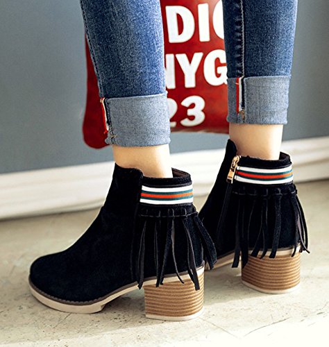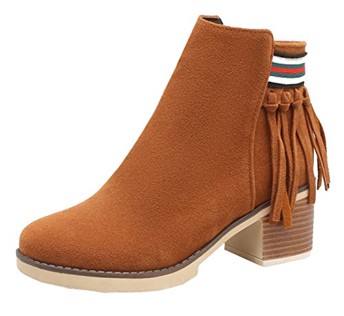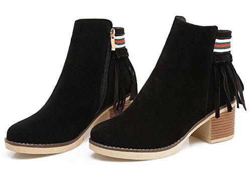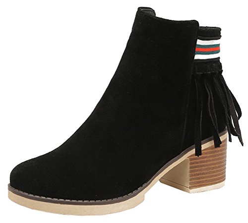 Binding : Apparel Product Description The cool weather is coming. And do you need to change the style of your shoes? If you have this idea, why not choose the ideal shoes in our shop? This pair of boots is for women, girls, young ladies and office workers. You will look sexy and chic when wearing them. The heels measure 2.6 inches. You will feel comfortable in their block heels. So you will not feel too tired when walking with them. The pair of shoes features ankle warp and inside zipper. The design of round toe and tassel will make you look cool. The sole is made of good rubber. You will feel comfortable in their soft bottom. They are of high quality and durable. Come on and take them away! 0