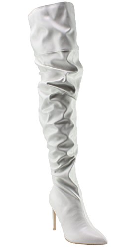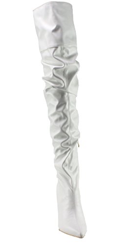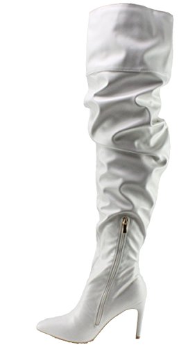 Binding : Apparel Product Description women's high heel dress boots, pointed toe, thigh-high, half height side zip for easy on and off, faux leather upper. *Product measurements were taken using Women's Size 6.5, width Medium. Please note that measurements may vary by size. 0