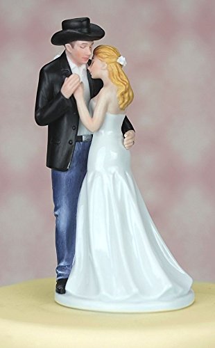Product Description This adorable western figurine is slow-dancing their way into married life. Features the groom wearing a cowboy hat and blue jeans. Hand painted porcelain. See hair color palette in detailed images. Cake Topper Design By Wedding Collectibles 0