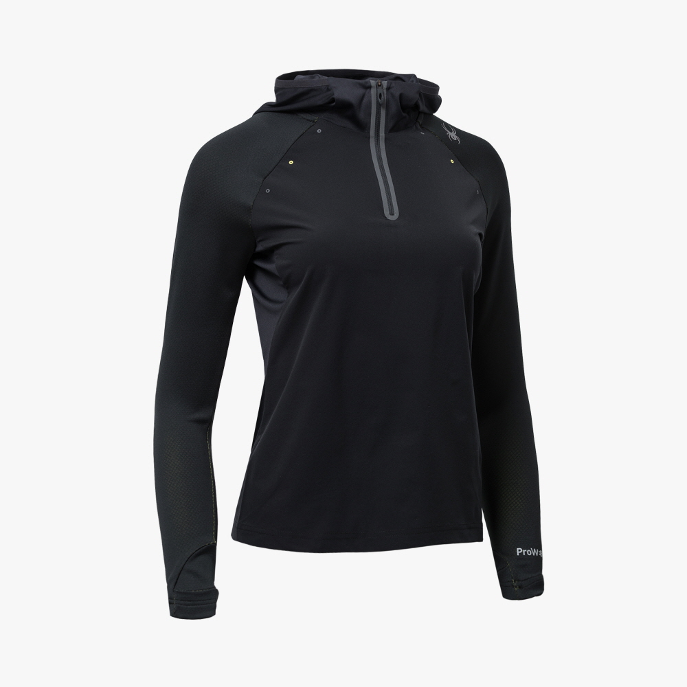 팔과 어깨의 움직임에 따라 컬러가 달라지며 안정감 있게 잡아주는 하이브리드 소재를 사용한 러닝 후드 티셔츠입니다.