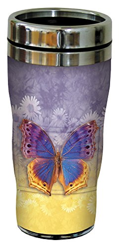 Tree-Free Greetings Vibrant Butterfly #3 Travel Mug, Stainless Lined Coffee Tumbler, 16-Ounce - Gift for Nature Lovers - Tree-Free Greetings 25505