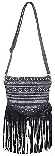 Tassel Boho Handbag Crossbody Carryall Tote Messenger Purse Khaki
