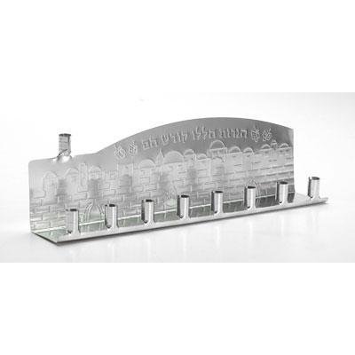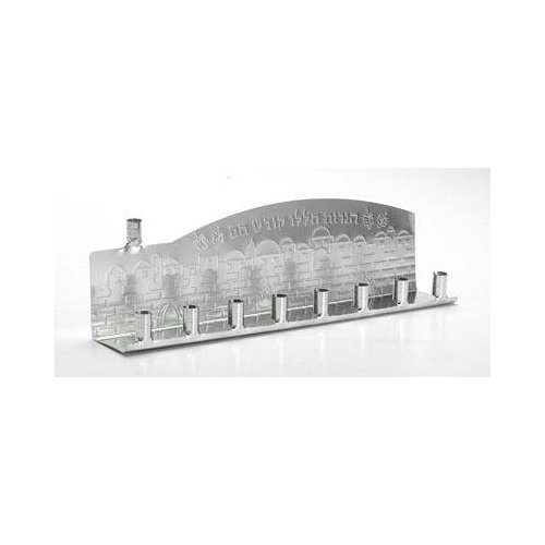 Product DescriptionThis tin menorah has bent over edges for safety. Jerusalem panorama featured on the menorah. For candle use.0