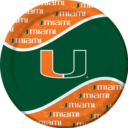 8-Count Round Paper Dinner Plates, Miami Hurricanes
