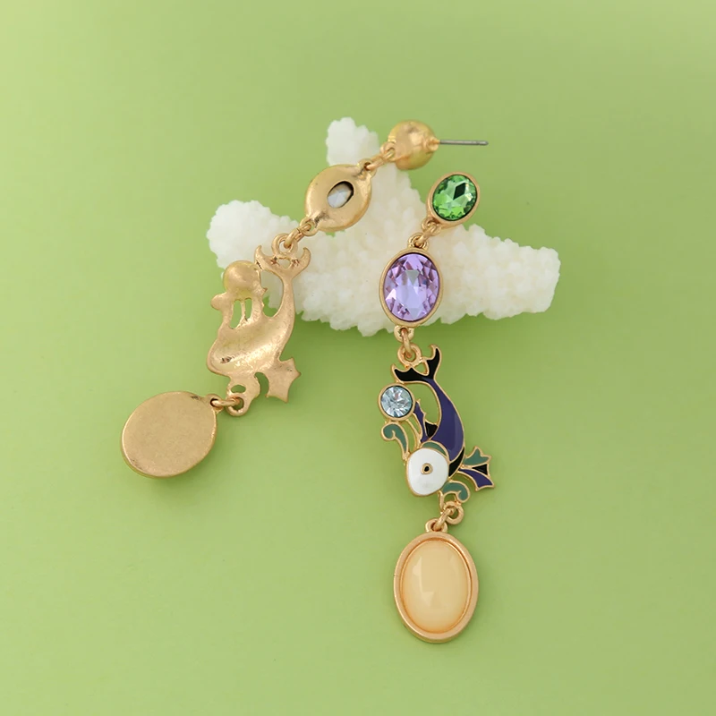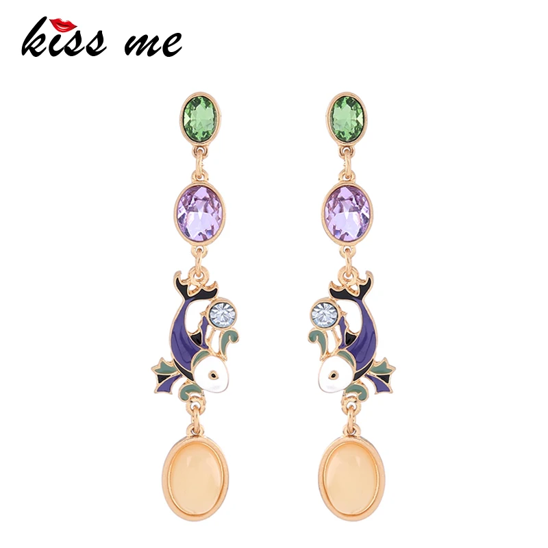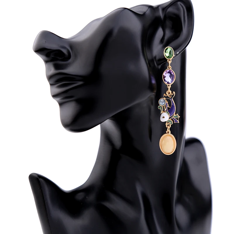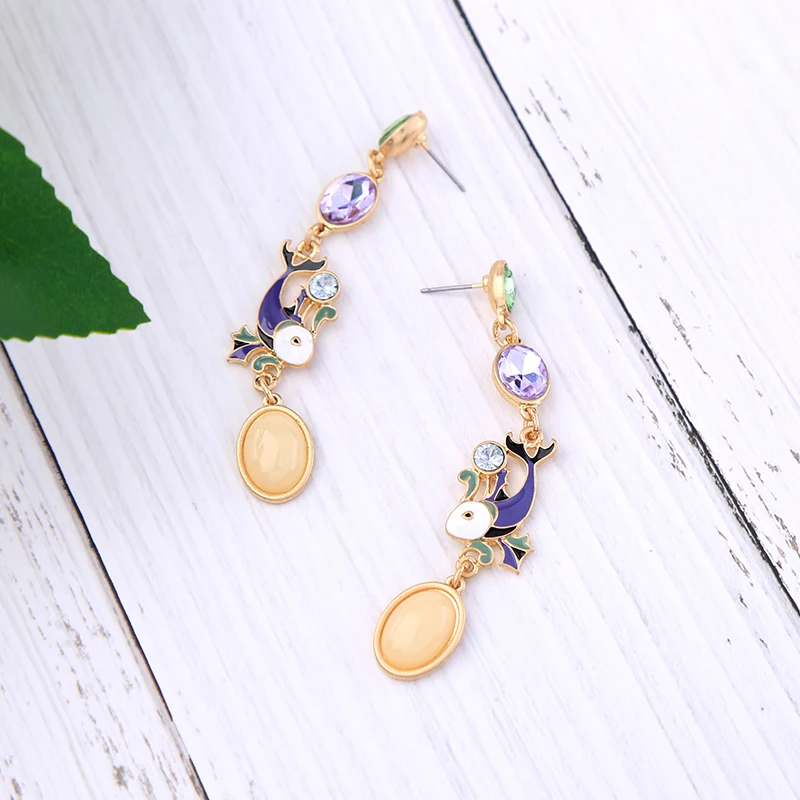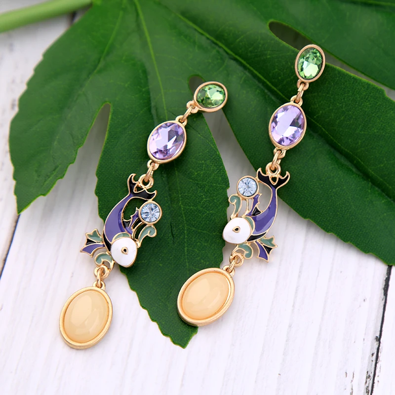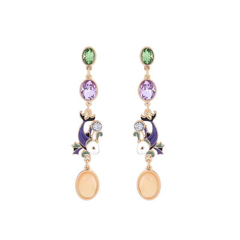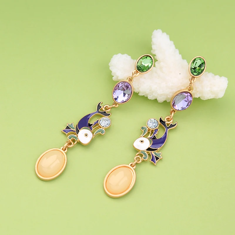 Production name ::Unique Purple Enamel Fish Crystal Drop Earrings for Women