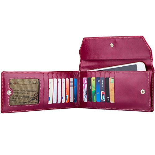 A large capacity generous full-length pockets, and 15 credit card slots including a photo slot. It is great for multiple cards, bill and receipts, cash and coins, lipstick; also easy hold your iphone 6/6s, Samsung Galaxy S4.An back zipped pocket for keys, quick in and out.