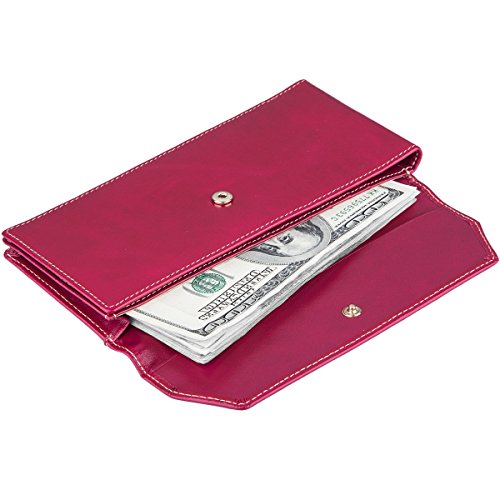 SODEE Women's Genuine Leather Long Zipper Wallet Credit Card/ID Case Clutch Holder Silm Purse (Red)