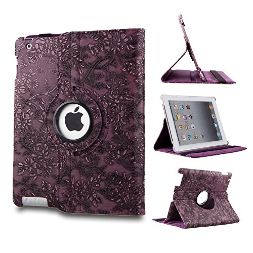 -. Title : TOPCHANCES Auto Sleep/Wake Function 360 Degree Rotating Smart Case Cover for 9.7 inch Apple iPad 2/3/4 with a Stylus as a Gift--Floral Pattern,Purple