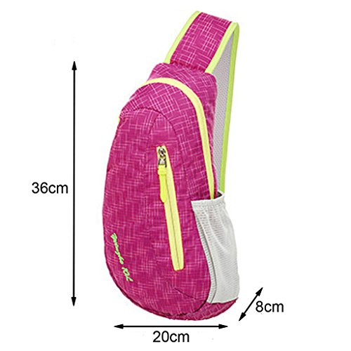 Casual and fashion bright color sling bag with main bag ,1 small pockets for your cellphone, tablet, wallet, keys and other small personal belongings and mesh pocket on the side for your water bottle .Adjustable and unique design straps ease the pressure on the shoulder, and The cushion with high permeability material, have never cover the sweat when you carry it a long time.
