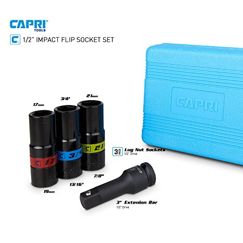 Capri Tools Impact Flip Socket Set, Lug Nut Service, Includes 17, 19, 21mm Metric Sizes and 3/4 ,13/16, 7/8 SAE Sizes