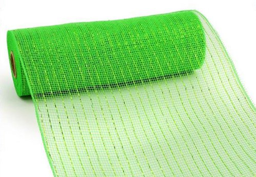 10 inch x 10 yards (30 feet) Deco Poly Mesh Ribbon - Lime Green with Lime Foil