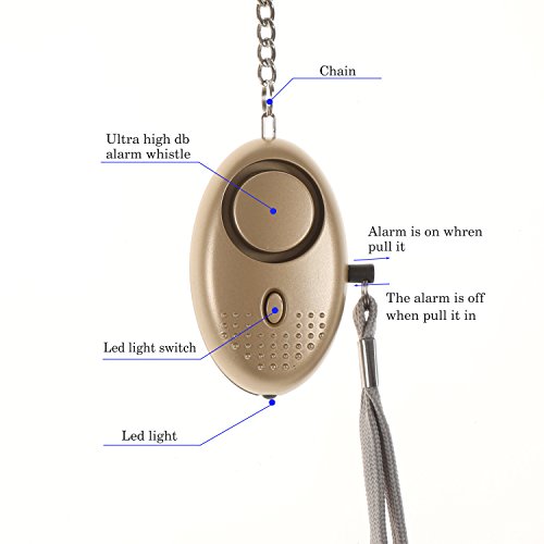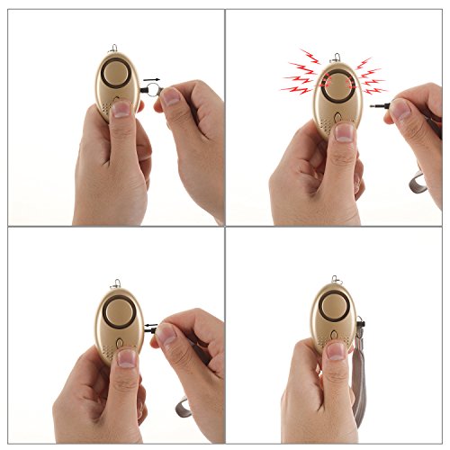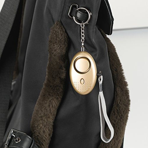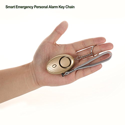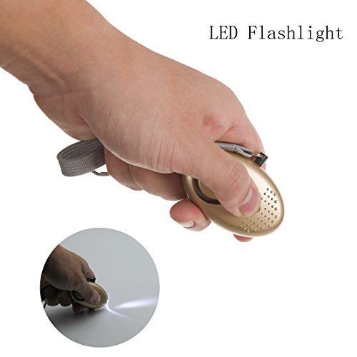 Emergency Personal Security Alarms Self-Defense, Electronic Device Security Alarm Keychain with LED Light for Men Women Kids Older Students(Gold)
