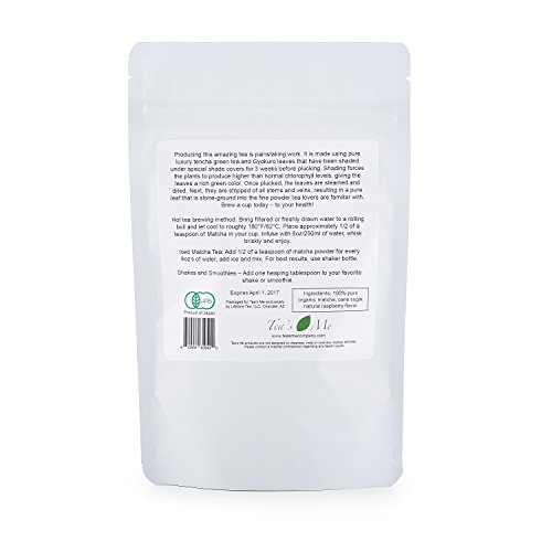 -. Binding : Grocery -. Brand : Tea's Me -. Color : Vibrant Green -. Feature : ✮ PEACEFUL ENERGY - Our Vanilla Matcha green Tea Powder releases caffeine slowly into your system, offering a steady rise in that get-up-and-go feeling and a taste that is unmatched! That, paired with the rare amino acid L-Theanine, which actually promotes a state of relaxation and negates the side effects of caffeine, gives you truly clear headed energy that you won't mind sipping on anytime! / ✮ NATURE'S WAY - This is the ONLY way to fully enjoy the remarkable benefits of green tea. When you brew tea leaves, only a small portion of the nutrients are able to escape through osmosis. By grinding the leaves into a chlorophyll-rich matcha green tea powder, you'll receive close to 90% MORE vitamins, minerals, and 137 times the free radical fighting antioxidants your body needs. / ✮ MEAN GREEN - Chlorophyll is an absolutely amazing detoxifier, helping to cleanse your body of the toxins that weigh you down. Matcha is noticeably richer in chlorophyll than other green teas, making it the perfect daily detox for both men and women! / ✮ A BETTER WAY TO SLIM -The weight loss market can not only be distressing, but dangerous. Some of those "healthy" supplements will really throw your system for a loop, and possibly make you feel worse than when you started. Using all natural Matcha to stimulate your metabolism is the heathy choice for your waistline! / ✮ GUARANTEED AND MORE -When you Buy Tea's Me, you're not only buying high quality, gluten free Matcha, but you'll also have the peace of mind of a FULL LIFETIME GUARANTEE! No matter what, if our product doesn't meet your needs, just send it back our way. Better still, you'll also receive a MINI MATCHA COOKBOOK to keep those delicious Matcha recipes flowing -. IsAdultProduct : 0 -. Label : Tea's Me -. LegalDisclaimer : Tea's Me products are not designed to diagnose, treat or cure any medical ailments. Please contact a medical professional regarding any health issues. -. Manufacturer : Tea's Me -. PackageQuantity : 1 -. ProductGroup : Grocery -. ProductTypeName : GROCERY -. Publisher : Tea's Me -. Studio : Tea's Me -. Title : Vanilla Matcha Green Tea Powder Organic Japanese Premium Matcha Tea w/ Natural Raspberry Extract- Natural Antioxidant Super Food- Great for Tea, Smoothies or Cooking - 3.5 oz- Money Back Guarantee