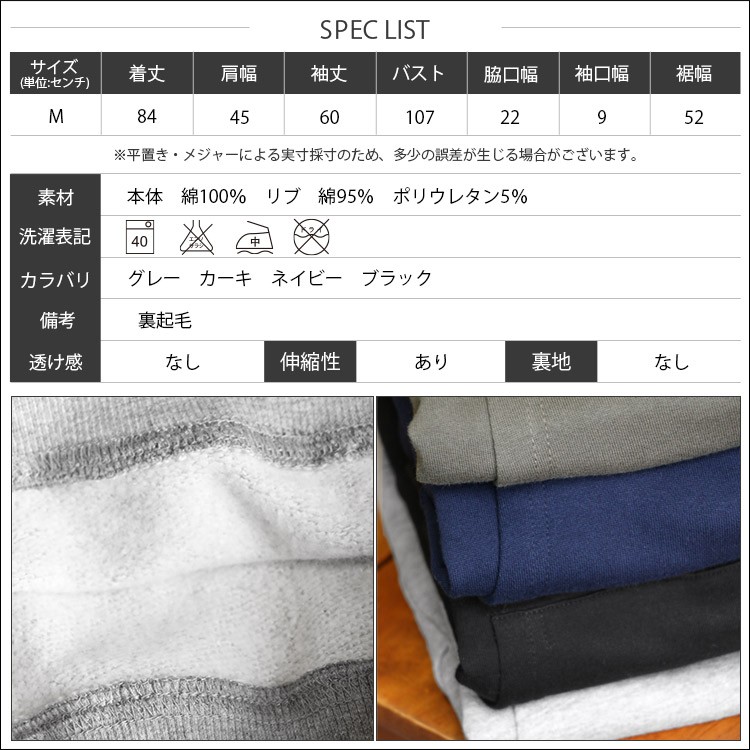 商品名:裏起毛パーカー