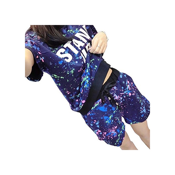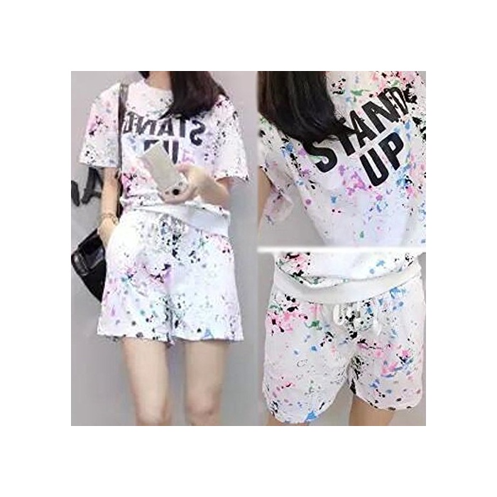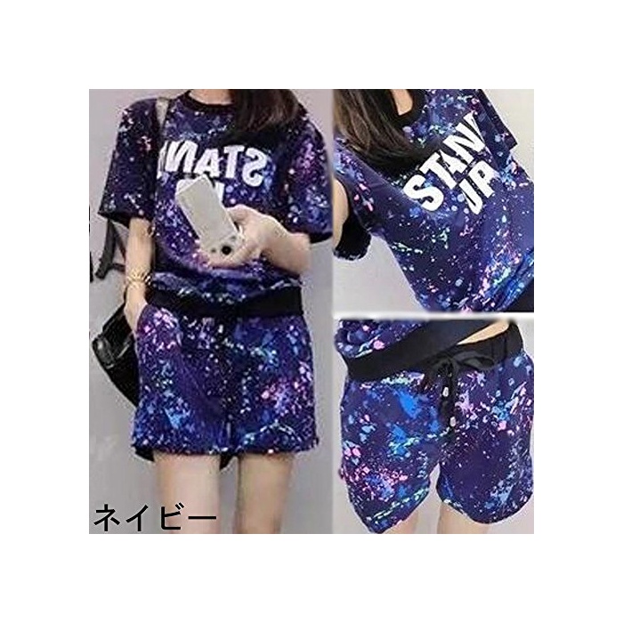 원본상품명: (ノブランド品) セットアップ セット 上下セット 半袖セットアップ レディス 部屋着 ルムウェア スポティ カジュアル ショトパンツ ペイント