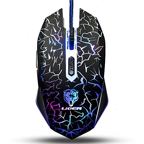Liger Gaming Mouse, Gaming Mouse Game Mouse Mice for PC, 6 Buttons, up to 3200 DPI, Adjustable DPI Switch Function, 7 Lighting Color Options-Black