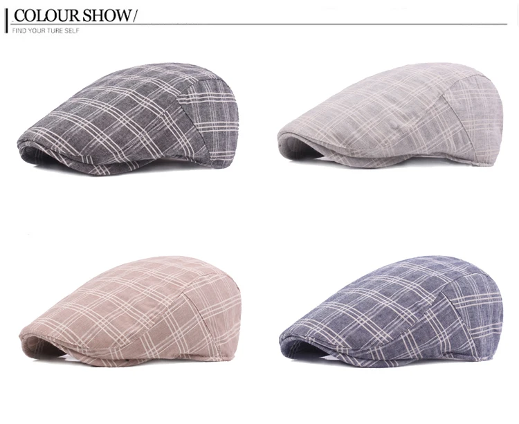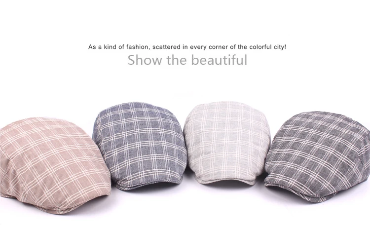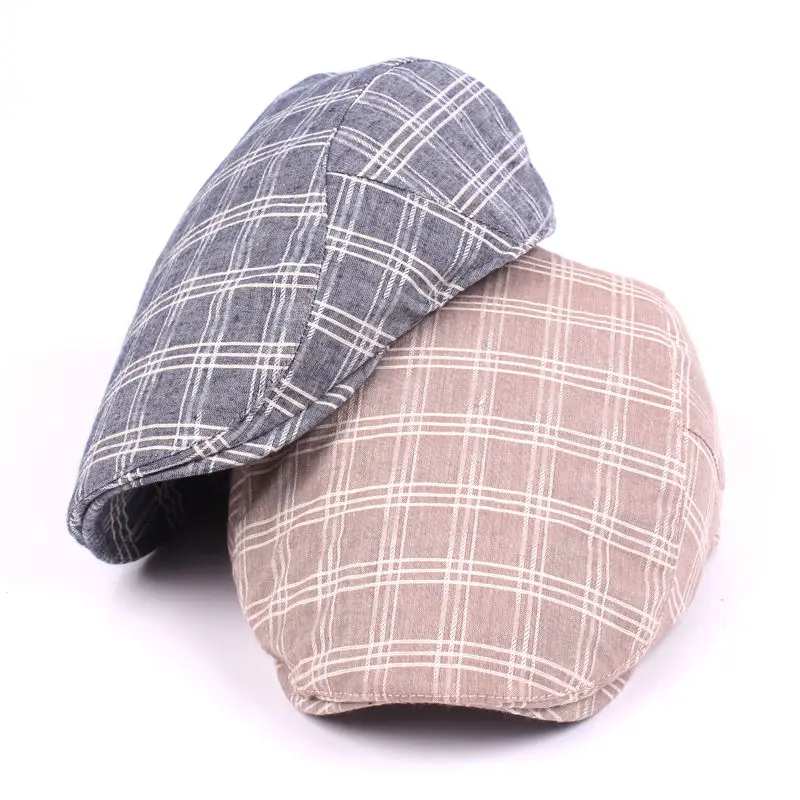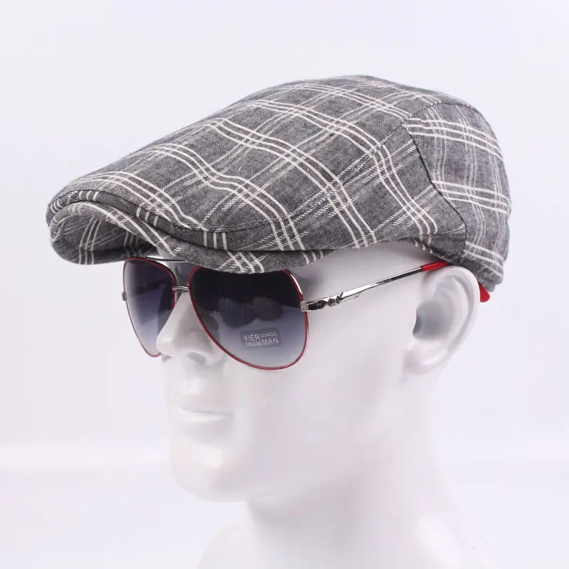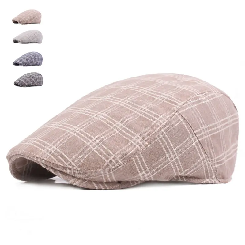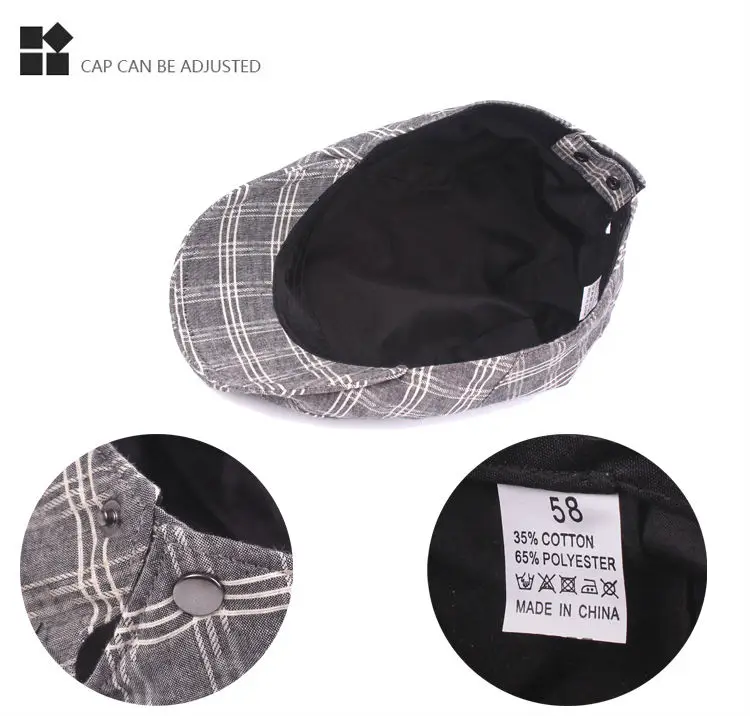 | [해외]높은 품질 캐주얼 베레모 모자 새로운 남녀 여름 스포츠 베레모 모자 남성 여성 조절 브랜드 격자 무늬 평면 태양 모자 |
