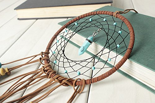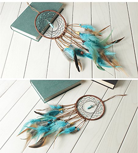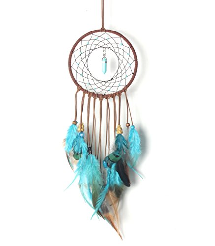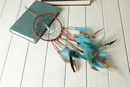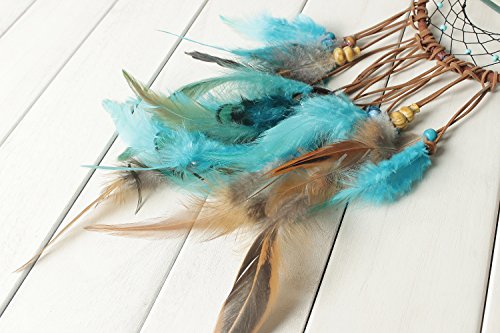 Boho Hippie Native American Turquoise Dream Catcher 5x20 Inch Beaded Natural Feathers And Handmade Weave Web Come With Kraft Gift Bag Hanging Ornaments Chic Gypsy Christmas Bedroom Wall Room Decor