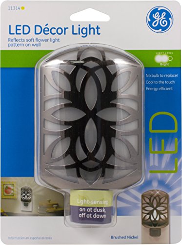 GE 11314 LED Brushed Nickel Decor Night Light, Silver