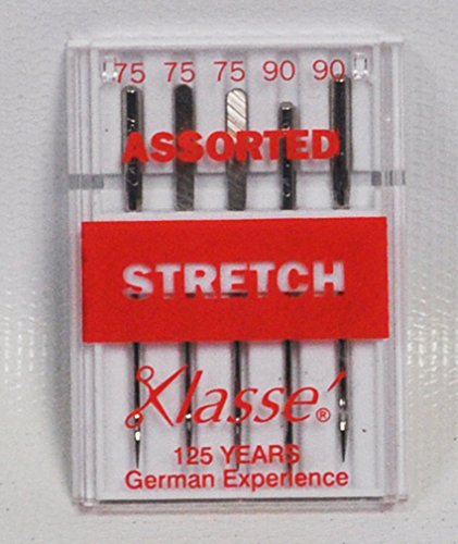 -. Feature : 5 Needles in package. 3x75 and 2x90. / Klasse sewing machine needles are precision-engineered in Germany by Europe's largest needle manufacturer. / Designed especially for two way stretch knits, lycra, power net, silk jersey, spandex and highly elasticised synthetic fabrics, also ideal for sewing elastic. The Stretch Needle has a specially designed scarf which prevents skipped stitched.